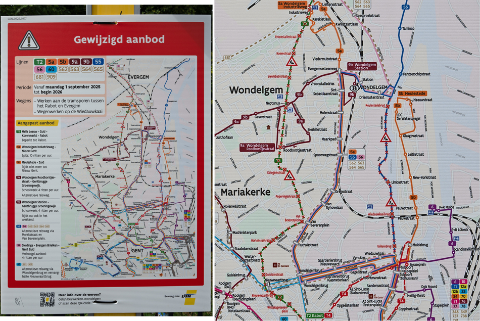 Het tramnet biedt geen omleidingsmogelijkheden en de genoemde straten zijn smal. Dat betekent dat het noordwesten van Gent over een afstand van ruim zes km ontdaan wordt van aldaar intensief gebruikte trams. Een goede reden dus om op zaterdag 30 augustus 2025 – op de voorlaatste dag dat lijn T2 naar Wondelgem/Ekeren reed – in Gent te gaan kijken.