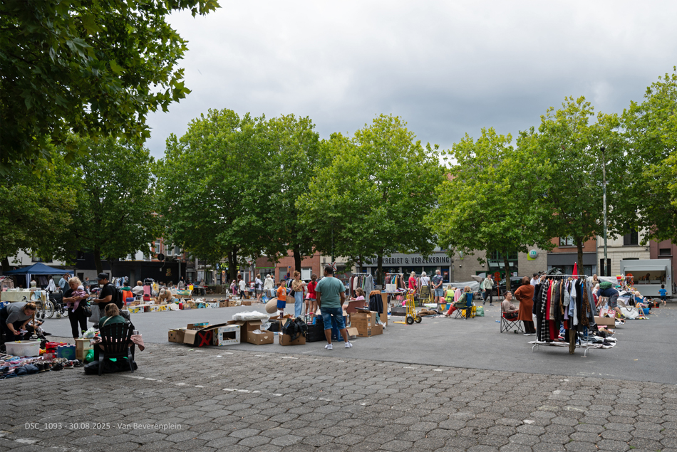 Edmond Van Beveren (1852-1897) was een Belgisch politicus. Op het naar hem genoemde plein wordt elke zondag een markt gehouden. Maar zoals de foto laat zien, worden daarbuiten ook andere activiteiten (zoals deze rommelmarkt) georganiseerd.