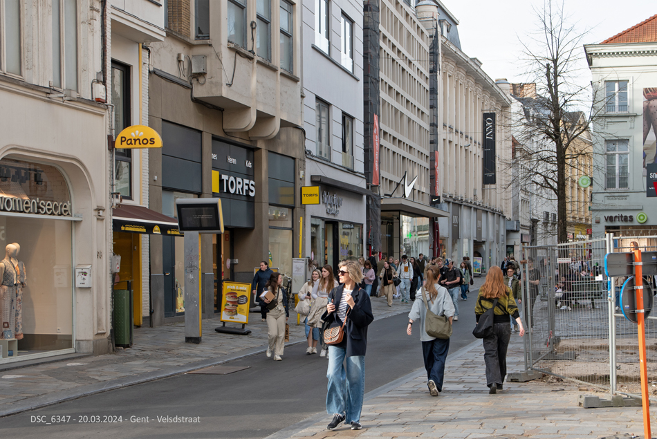De op 20 maart 2024 al van rails ontdane Veldstraat in Gent.