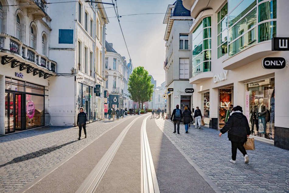 Toekomstbeeld van de Veldstraat na de werken aan de Petercelle-as. Bron: Stad Gent.