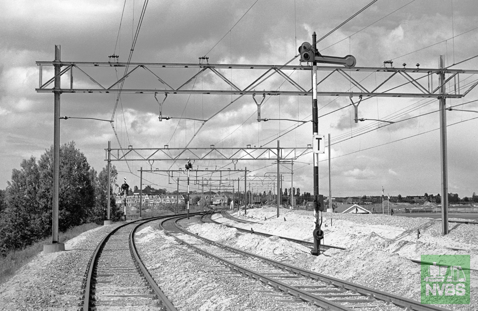 NEG101093-128-02 werd gemaakt door Roef Ankersmit op 27 mei 1961 van de noordelijke splitsing (Nspl) tussen Haarlem en Bloemendaal. Het hoofdsein is het afstandssein voor de samenvoeging van de verbindingsbaan (Zspl – Nspl) en de hoofdlijn. De vraag is wat de T betekent op het bord aan de seinpaal.