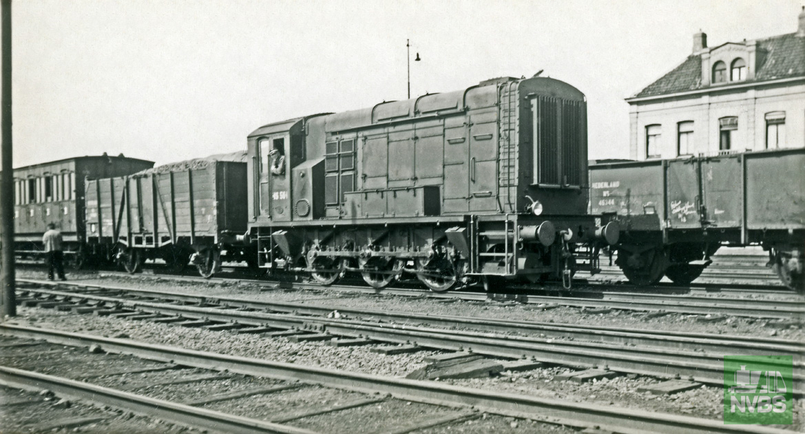 NEG804-029 werd in 1955 gemaakt door L. Stigter. We zien twee (door Werkspoor gebouwde) Argentijnse diesellocs tijdens een proefrit. Waar is dit? ❖ Deze foto is gemaakt op het emplacement Utrecht Lunetten, bij de splitsing van de spoorlijnen naar Arnhem (achter de trein) en Den Bosch. Hier werd vaak kopgemaakt door treinen die via de Maliebaan om Utrecht heenreden, zoals de ‘olieboeren’ die jarenlang aardolie vervoerden van Schoonebeek in Drenthe naar de raffinaderijen in Rotterdam. Aan de foto is niet te zien of het een lege of een volle olietrein is, maar een rit met een beladen trein naar Rotterdam zou een interessante proef kunnen zijn voor deze nieuwe locomotieven. Die staan trouwens op tijdelijke normaalspoordraaistellen. Inmiddels is de sporensituatie bij Utrecht Lunetten volledig veranderd. Met dank aan Vasco de Cocq, Harry Bouwma, Arjan van Kuler, Ad Vijge, Jeroen Klinkers, Frank Pennin en Joost de Waal.