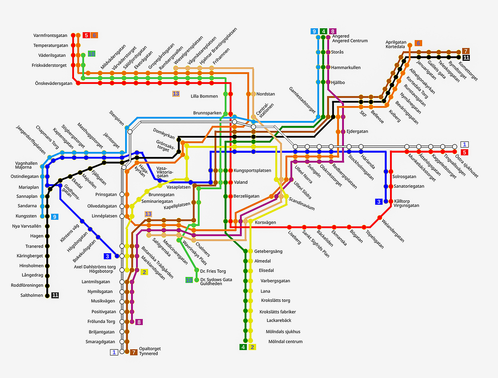 Het trambedrijf van Göteborg, het grootste van de Noordse landen, telt elf tramlijnen met een spoorwijdte van 1435 millimeter. Binnenkort wordt een nieuwe lijn naar Lindholmen geopend. De lange lijnen naar de buitenwijken zijn sneltramlijnen, efficiënt maar niet erg fotogeniek. Mede daarom zijn bijna alle foto’s in dit artikel gemaakt in het stadscentrum van Göteborg.