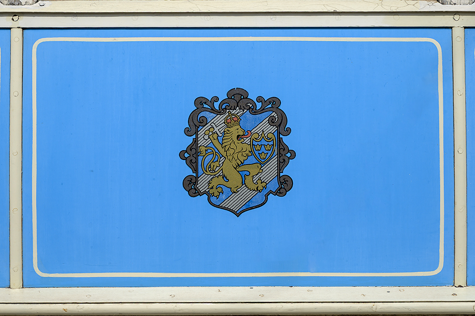 Op de museumtrams prijkt het stadswapen van Göteborg. Hoe fraai zo’n stadswapen ook moge zijn, op de moderne trams ontbreekt het.