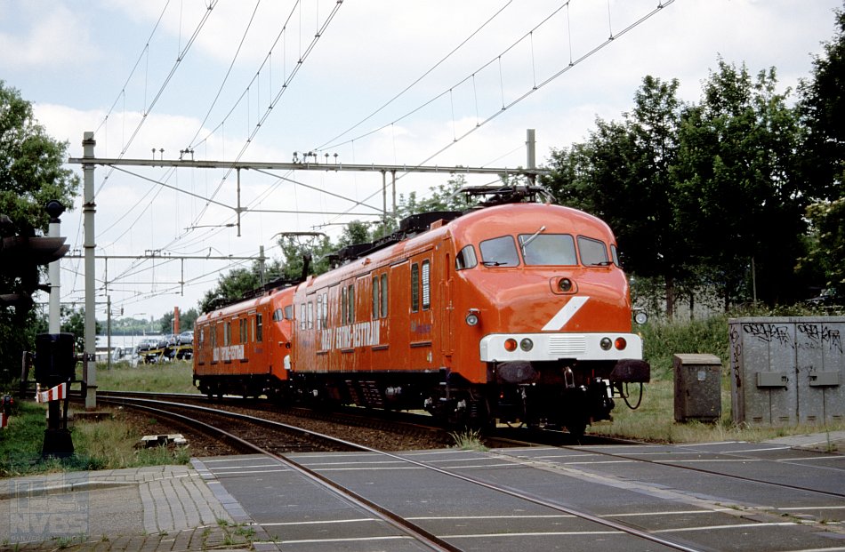 De voormalige motorpostwagens 3033 en 3034 als testtrein voor ETCS/ERTMS in Valkenburg op 19 juni 2001. Foto: Harry Peters, beeldbank SNR.