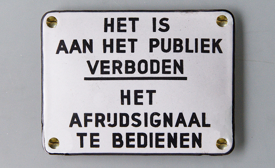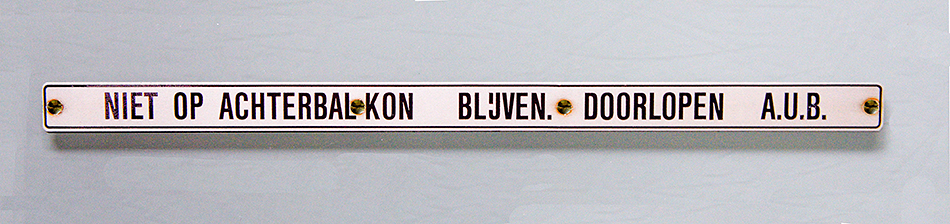 Mijn eerste tekstbordje kocht ik op twaalfjarige leeftijd tijdens een tentoonstelling in de Rotterdamse remise Delfshaven. De expositie was georganiseerd door het mannenkoor van de RET. Ik betaalde voor het bordje twee gulden vijftig — een flinke hap uit mijn zakgeld. Thuis verklaarde mijn vader me voor gek: zoveel geld voor een stuk oud ijzer! Maar meer dan een halve eeuw later is het nog steeds een gekoesterd onderdeel van mijn verzameling.