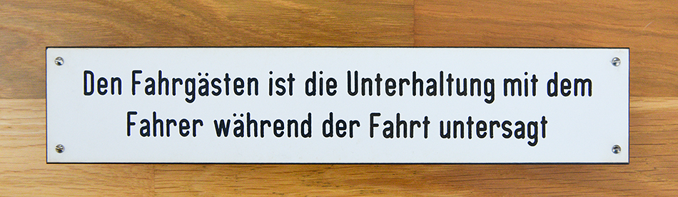 In Mainz bleven ze echter tot het laatst zitten. Toen de trams uit Mainz na de Wende naar het Poolse Elbląg gingen, schreef ik het trambedrijf een verzoek om zo’n bordje. Ik verwachtte er niets van, maar een week later lag het begeerde exemplaar in de brievenbus. Uiteraard stuurde ik een oprecht bedankje terug.