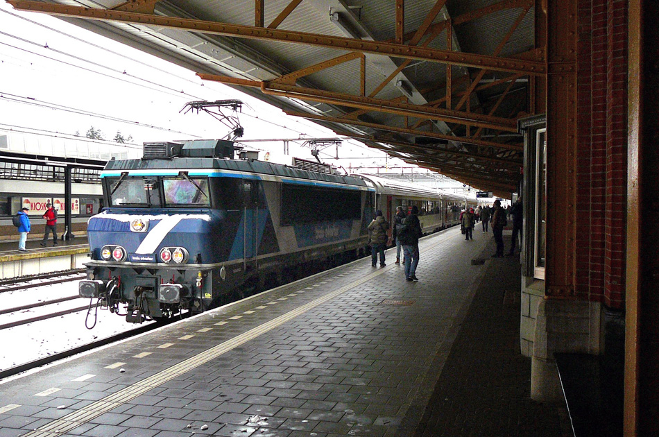 Loc E 186 005 van NS in Essen (B) voor een trein met ICR-rijtuigen tijdens de afscheidsrit die NS International, NMBS, Trainworld en de SNE gezamenlijk organiseerden. Foto: Frank Hoogenboom.