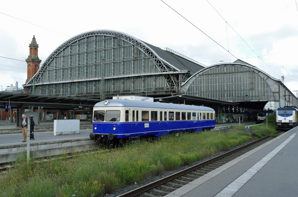 Motorwagen T2 van de Deutsche Eisenbahn Verein e.V. staat voor vertrek naar Bruchhausen-Vilsen gereed op station Bremen Hbf tijdens het Schönes Wochende 2025 van de SNE, 13 juli 2025. Foto: Paul Muré.