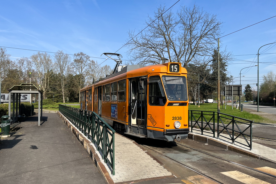 Tram 2838 op het eindpunt van lijn 15.