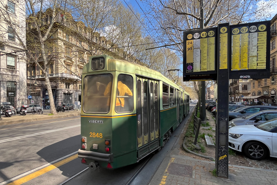 Tram 2848 als lijn 15 in het centrum van Turijn.