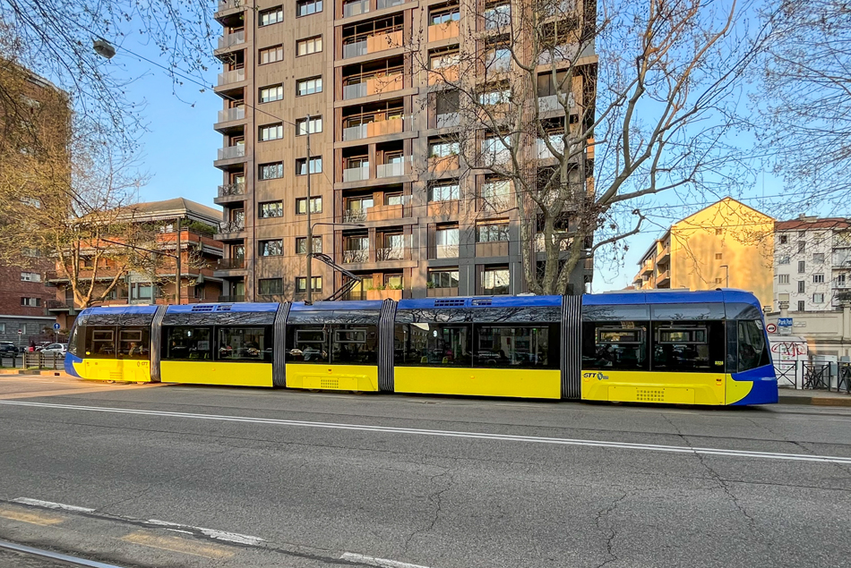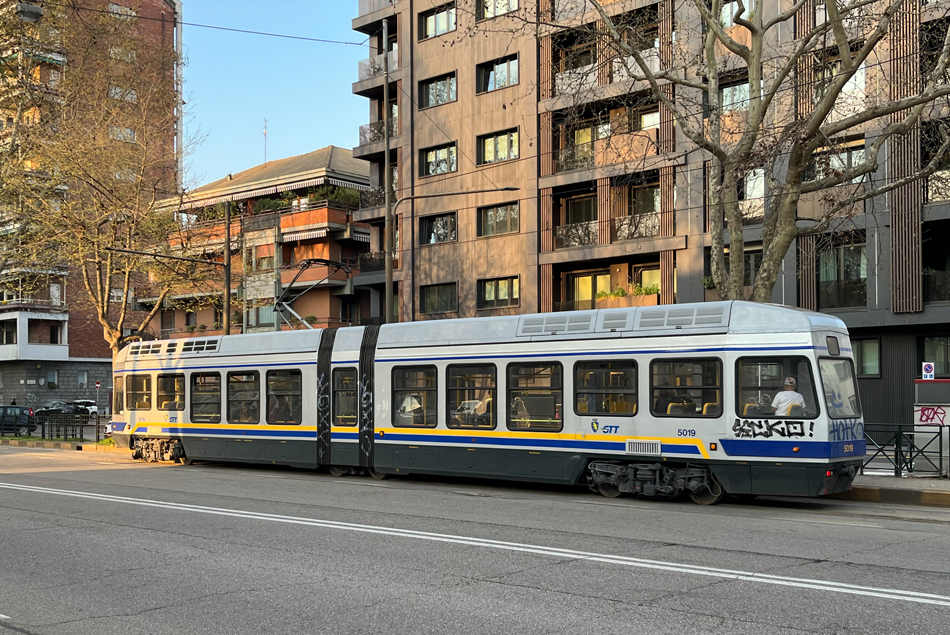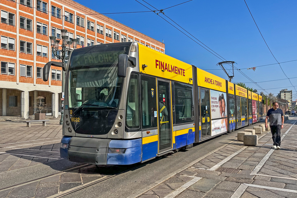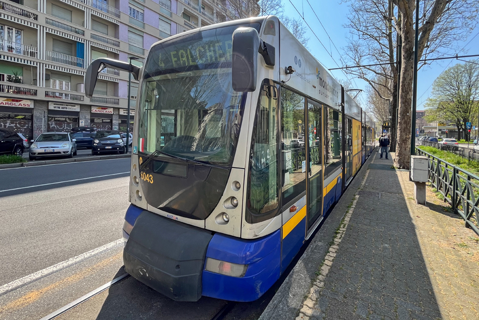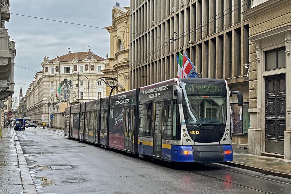 Tram 6012 op lijn 4 in het centrum van Turijn.