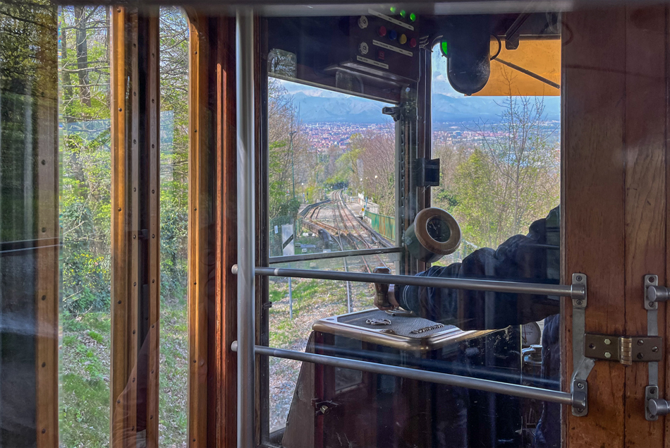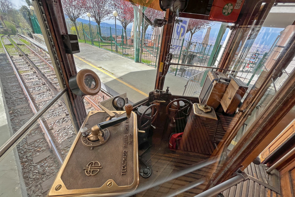 De bedieningspost van een rijtuig van de tandradbaan Sassi–Superga.