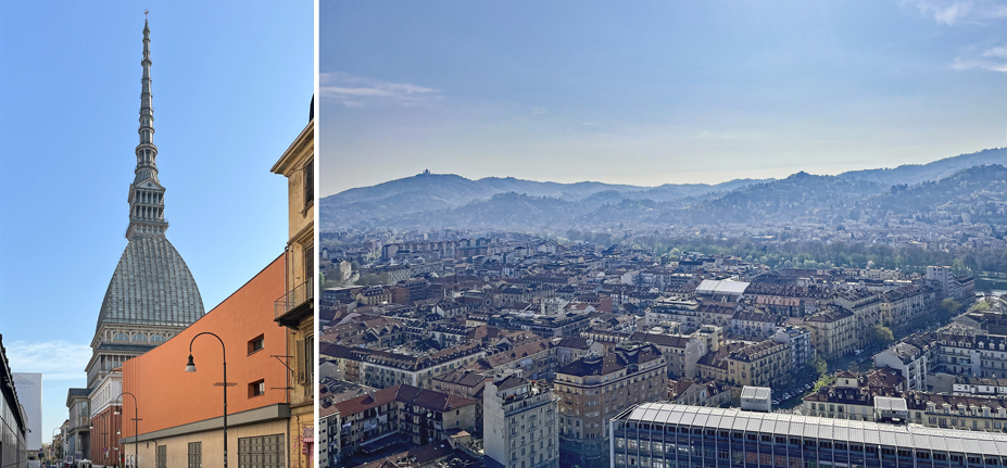 Il Mole (links) en het uitzicht op de Superga vanuit de top van Il Mole (rechts).