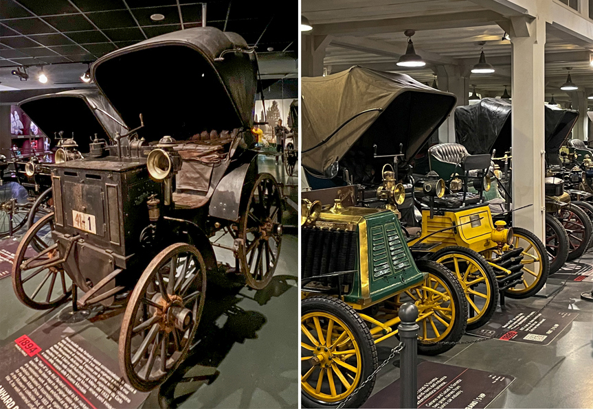 Historische auto’s in het National Automobiel Museum. Links een Panhard-Levassor uit 1894.