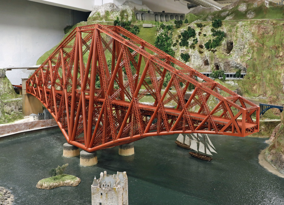 Een apart thema in Miniworld is Groot-Brittannië. Hier wordt nog steeds hard aan gewerkt. Een van de pronkstukken is de beroemde spoorbrug over de Firth of Forth in Schotland. Die brug is zo gigantisch dat er maar een deel van nagebouwd kon worden en dat er gesmokkeld moest worden met de schaal. |