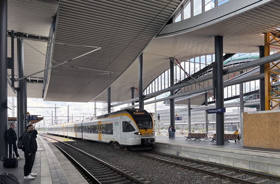 Wie in de afgelopen jaren per trein via de grensovergang Emmerich heeft gereisd, heeft kunnen ervaren dat er flink gewerkt wordt in het Hauptbahnhof van Duisburg. Het betreft een zeer grondige renovatie die in 2009 begonnen is en tegen 2030 voltooid moet zijn. Tijdens de werkzaamheden moet het treinverkeer in dit belangrijke knooppunt zo veel mogelijk door kunnen gaan. Het werk vordert dan ook langzaam, maar de veranderingen zijn vanaf de perrons goed te volgen. In 2025 heb ik Duisburg Hbf vijf keer bezocht en de voortgang van het werk gefotografeerd.